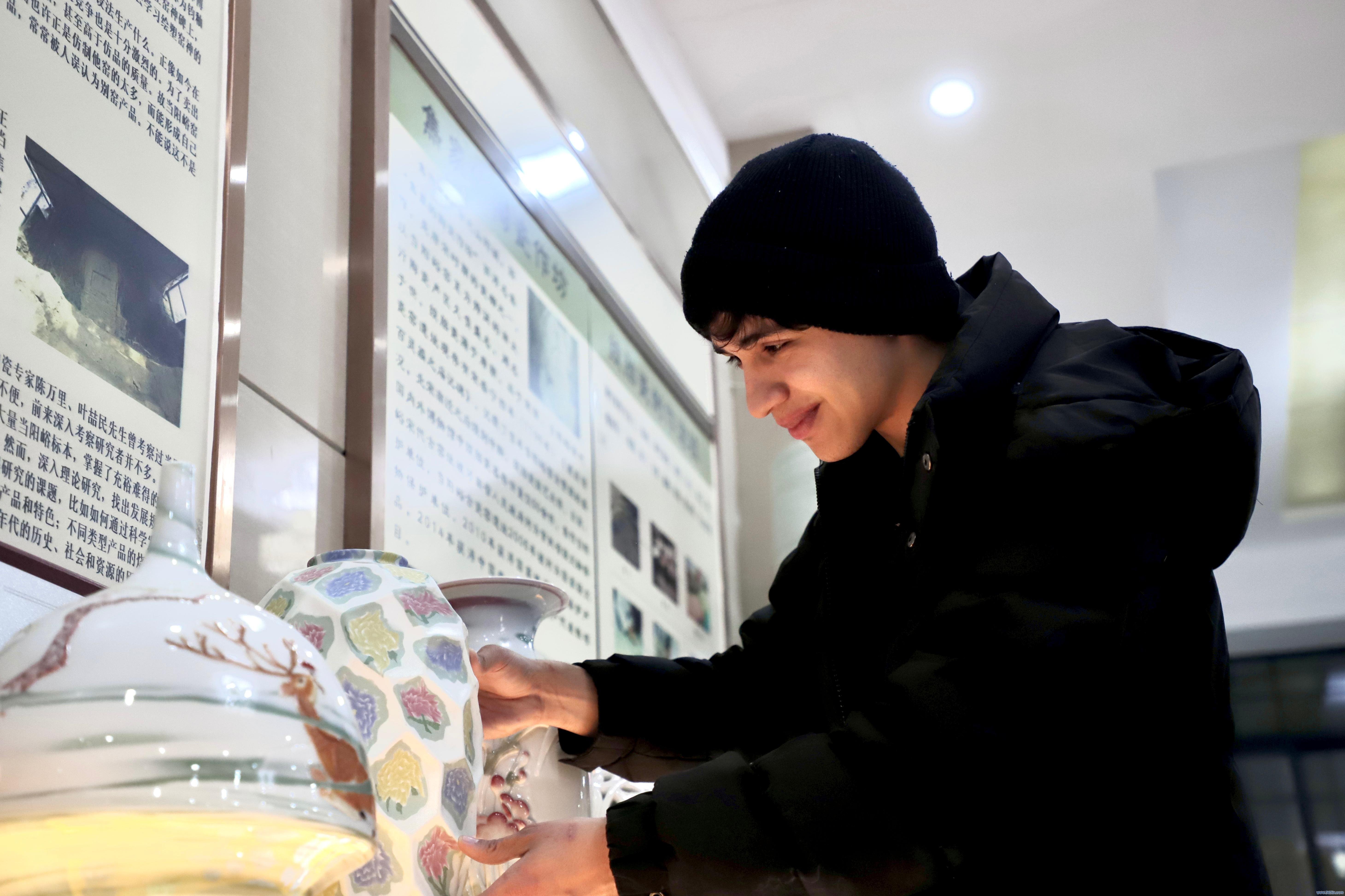 近日,来自巴西的张傲熙(Nicholas Da Silva Carvalho)走进河南焦作当阳峪金谷轩绞胎瓷博物馆,探索有着“瓷中正人”之称确当阳峪绞胎瓷。